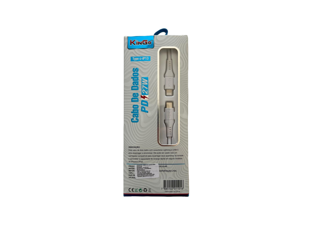 Fabricado com fios de cobre e chip inteligente, este cabo possui 2 metros com conectores USB-C e Lightning, ideal para recarregar e sincronizar.