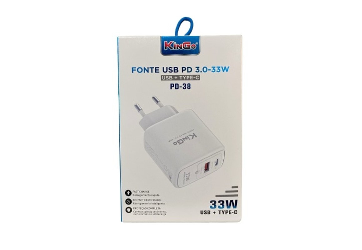 Fonte carregador USB QC + Type C 33W Turbo (PD-38)