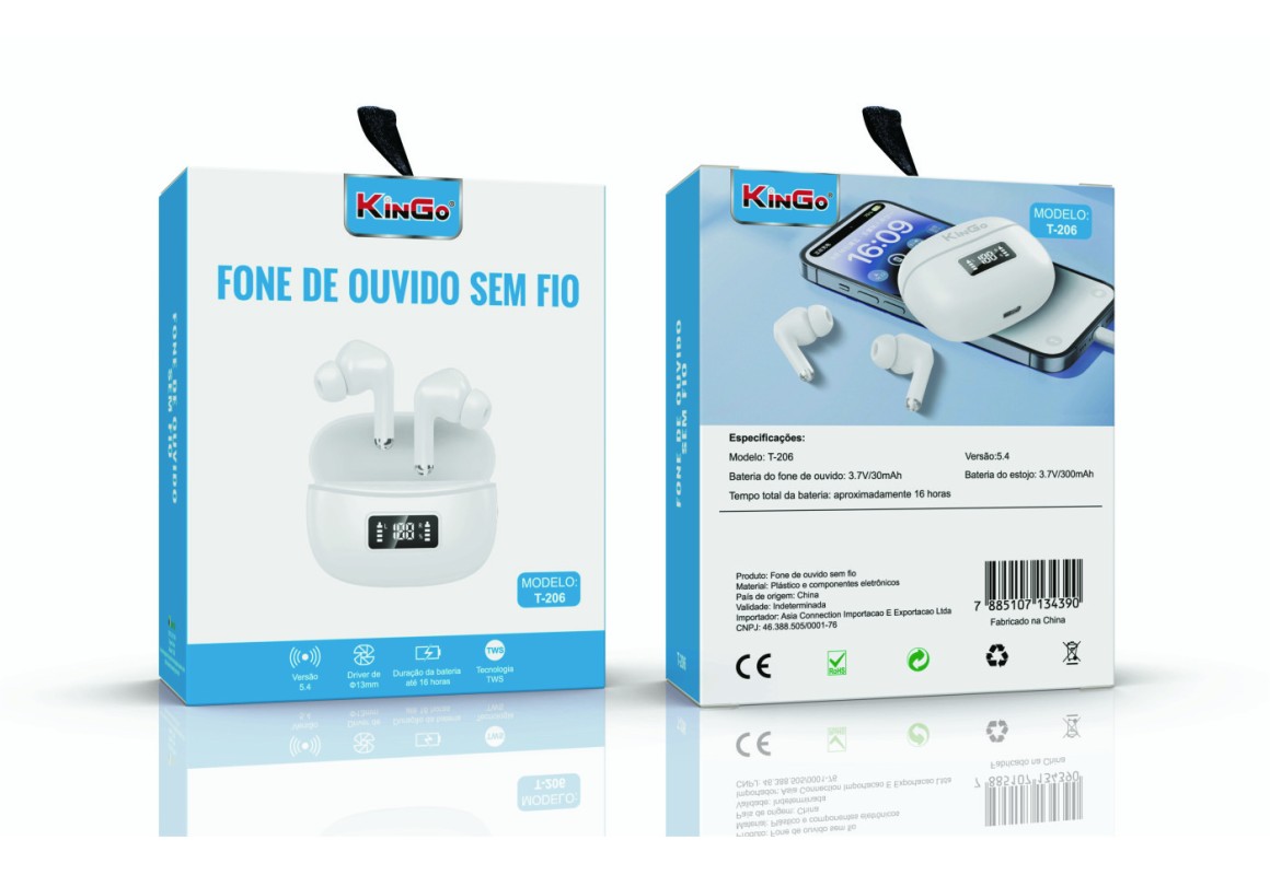 FONE SEM FIO TWS+TELA DIGITAL T-206 BRANCO