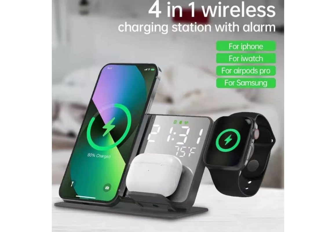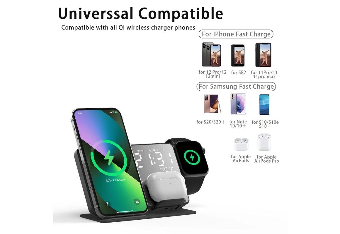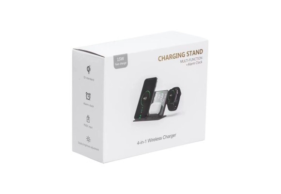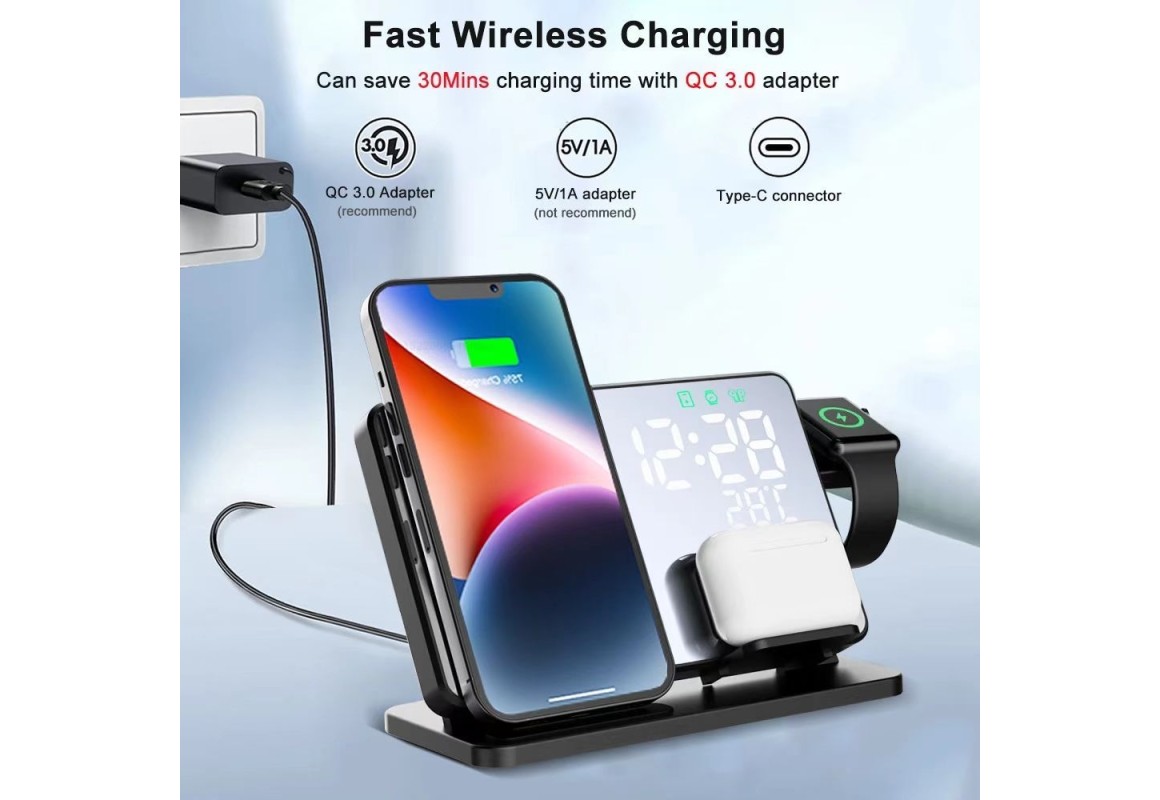Carregador Sem Fio Multifuncional 3 em 1 com Relógio e Alarme – 15W Fast Charge